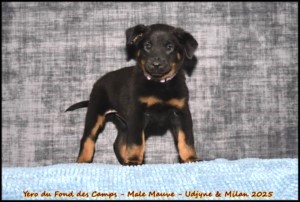 Suivi des chiots d' Udjyne du Murier de Sordeille et Milan du Murier de Sordeille nés le 29/09/2025 Pedigree Cliquez sur le nom du chiot pour accéder à sa page perso, cliquez sur la photo pour la voir en grand